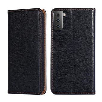 For Samsung Galaxy S21+ 5G PU + TPU Gloss Oil Solid Color Magnetic Horizontal Flip Leather Case with Holder & Card Slot & Wallet(Black)