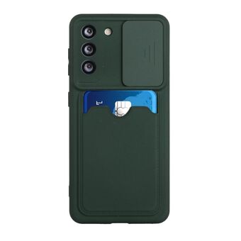 For Samsung Galaxy S21+ 5G Sliding Camera Cover Design TPU Protective Case with Card Slot(Dark Green)