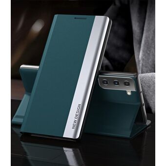 For Samsung Galaxy S21+ 5G Side Electroplated Magnetic Ultra-Thin Horizontal Flip Leather Case with Holder(Green)