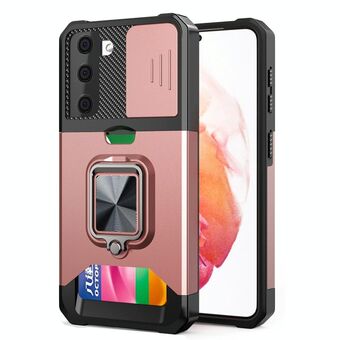 For Samsung Galaxy S21+ Sliding Camera Cover Design PC + TPU Shockproof Case with Ring Holder & Card Slot(Rose Gold)