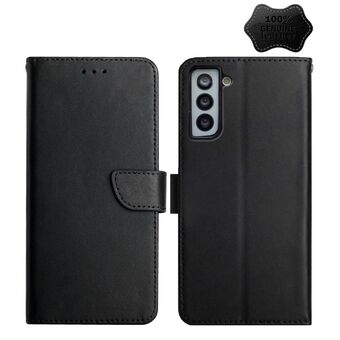 For Samsung Galaxy S21+ 5G Genuine Leather Fingerprint-proof Horizontal Flip Phone Case(Black)