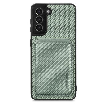 For Samsung Galaxy S21+ 5G Carbon Fiber Leather Card Magsafe Magnetic Phone Case(Green)