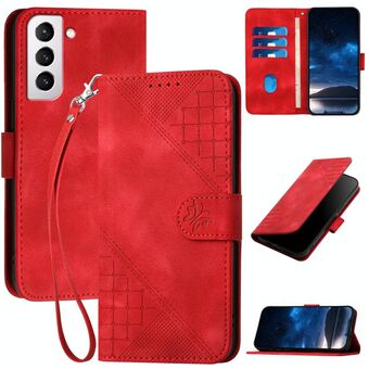 For Samsung Galaxy S21+ 5G YX0080 Grid Butterfly Embossed Pattern Flip Leather Phone Case with Lanyard(Red)