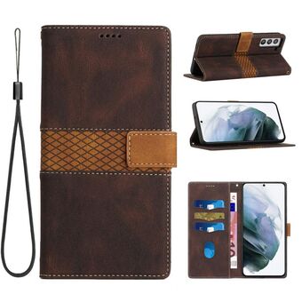 Για Samsung Galaxy S21+ 5G Grid Stitching Δερμάτινη θήκη τηλεφώνου με κορδόνι (καφέ)