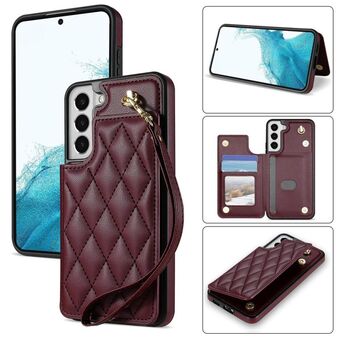 Για Samsung Galaxy S21 + 5G Rhombic Διπλή Πόρπη υποδοχές κάρτας υπόθεση τηλεφώνου με κορδόνι (μωβ)