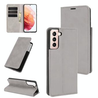 Θήκη δέρματος με μαγνητική απορρόφηση Retro-skin για Samsung Galaxy S21 Plus 5G με βάση στήριξης & υποδοχές καρτών & πορτοφόλι (Γκρι)