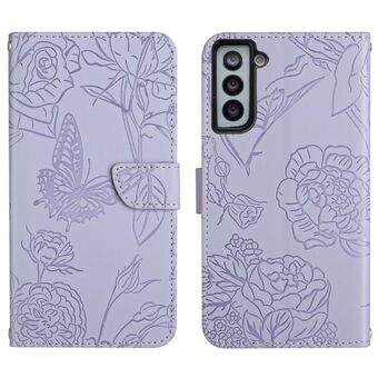 Θήκη τηλεφώνου Samsung Galaxy S21+ 5G από δέρμα με ανάγλυφο σχέδιο πεταλούδας και παιώνιας (κόκκινο)