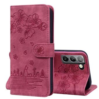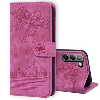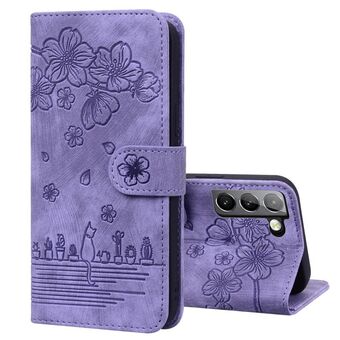 Θήκη τηλεφώνου από δέρμα με ανάγλυφο σχέδιο καρτούν Sakura Cat για Samsung Galaxy S21+ 5G (Βασιλικό Μπλε)