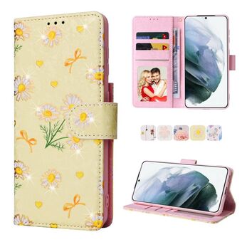 Θήκη δερμάτινη με σχέδιο Bronzing Painting RFID για Samsung Galaxy S21 Plus (Κίτρινο Μαργαρίτα)