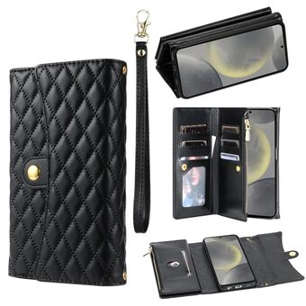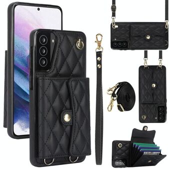 For Samsung Galaxy S21+ 5G Crossbody Rhombic Horizontal Wallet Leather Phone Case(Black)