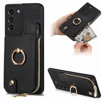 For Samsung Galaxy S21+ 5G Cross Leather Ring Vertical Zipper Wallet Back Phone Case(Black)