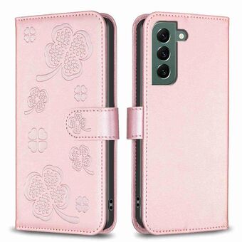 For Samsung Galaxy S21+ 5G Four-leaf Embossed Leather Phone Case(Pink)