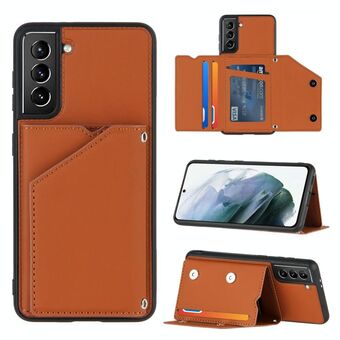 For Samsung Galaxy S21+ 5G Skin Feel PU + TPU + PC Back Cover Shockproof Case with Card Slots & Holder & Photo Frame(Brown)