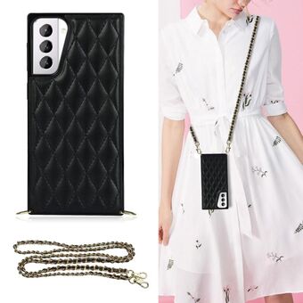 For Samsung Galaxy S21+ 5G Elegant Rhombic Pattern Microfiber Leather +TPU Shockproof Case with Crossbody Strap Chain(Black)