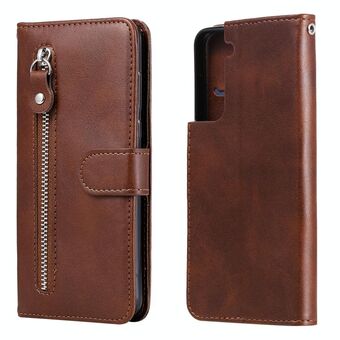 For Samsung Galaxy S21 Plus 5G Fashion Calf Texture Zipper Horizontal Flip Leather Case with Holder & Card Slots & Wallet(Brown)