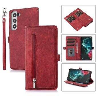 For Samsung Galaxy S21+ Zipper Wallet Bag Horizontal Flip PU Leather Case with Holder & 9 Card Slots & Wallet & Lanyard & Photo Frame(Red Wine)