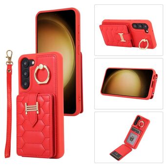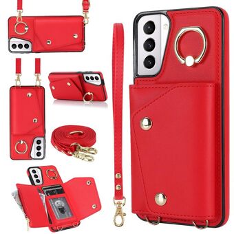 For Samsung Galaxy S21+ 5G Vertical Card Bag Ring Holder Phone Case with Dual Lanyard(Red)