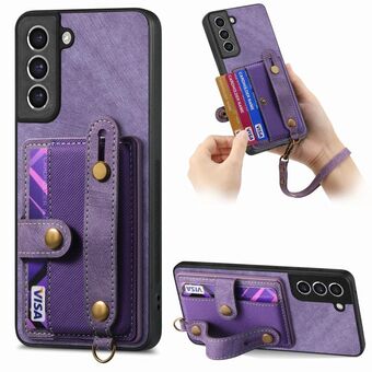 For Samsung Galaxy S21+ 5G Retro Wristband Holder Leather Back Phone Case(Purple)