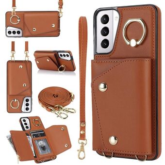 For Samsung Galaxy S21+ 5G Vertical Card Bag Ring Holder Phone Case with Dual Lanyard(Purple)