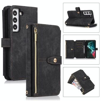 For Samsung Galaxy S21+ Zipper Wallet Bag Horizontal Flip PU Leather Case with Holder & 9 Card Slots & Wallet & Lanyard & Photo Frame(Brown)