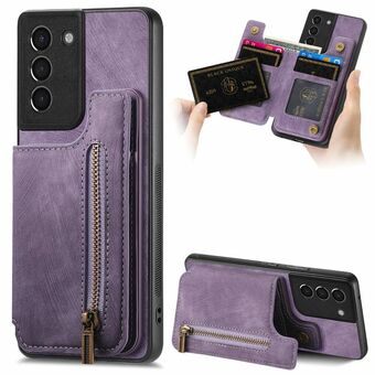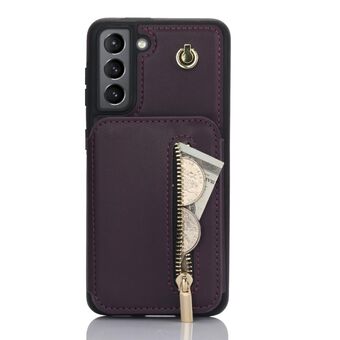 For Samsung Galaxy S21+ 5G Retro Leather Zipper Wallet Back Phone Case(Purple)