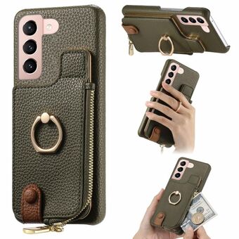 For Samsung Galaxy S21+ 5G Cross Leather Ring Vertical Zipper Wallet Back Phone Case(Brown)