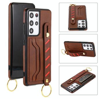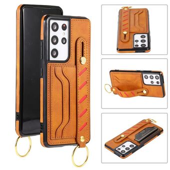 For Samsung Galaxy S21 Ultra 5G Wristband Wallet Leather Phone Case(Brown)