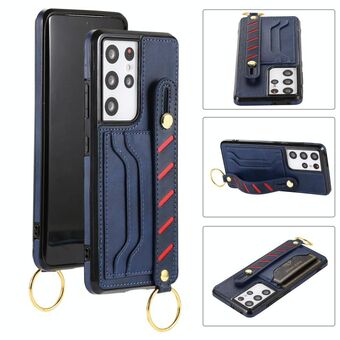 For Samsung Galaxy S21 Ultra 5G Wristband Wallet Leather Phone Case(Blue)