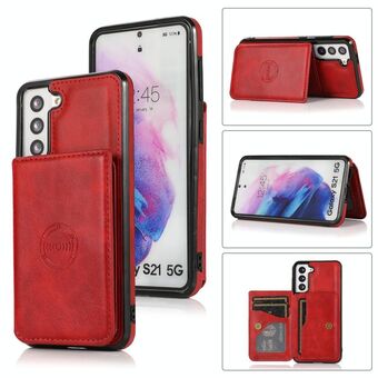 For Samsung Galaxy S21 5G Dual Buckle Card Wallet Calf Leather Phone Case(Red)