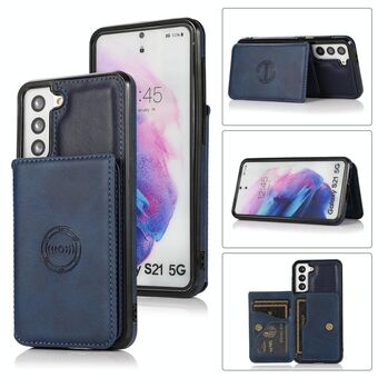For Samsung Galaxy S21 5G Calf Texture Magnetic Card Bag PU Phone Case(Blue)