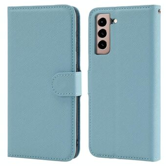 For Samsung Galaxy S21 5G Cross Texture Detachable Leather Phone Case(Blue)
