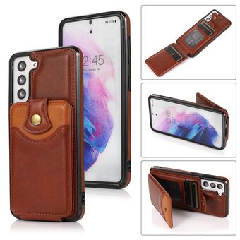For Samsung Galaxy S21 5G Calf Texture Magnetic Card Bag PU Phone Case(Brown)