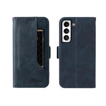 For Samsung Galaxy S21 5G Dual Buckle Card Wallet Calf Leather Phone Case(Blue)