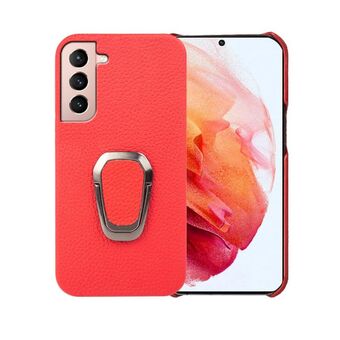 For Samsung Galaxy S21 Ring Holder Litchi Texture Genuine Leather Phone Case(Red)