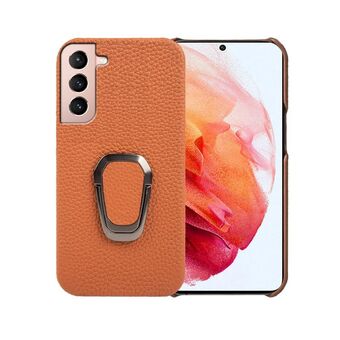 For Samsung Galaxy S21 Ring Holder Litchi Texture Genuine Leather Phone Case(Brown)