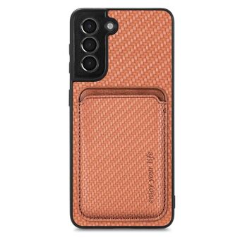 For Samsung Galaxy S21 5G Carbon Fiber Leather Card Magsafe Magnetic Phone Case(Brown)