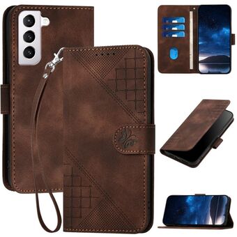 For Samsung Galaxy S21 5G YX0080 Grid Butterfly Embossed Pattern Flip Leather Phone Case with Lanyard(Coffee)