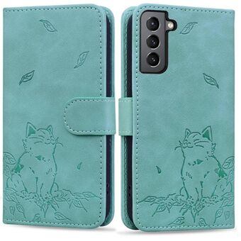 For Samsung Galaxy S21 5G Cute Cat Embossed Leather Phone Case(Green)