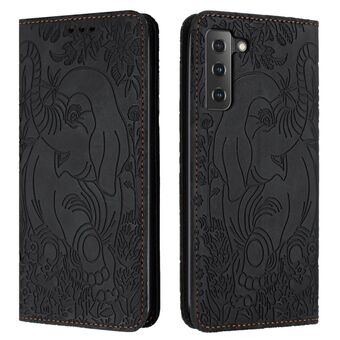 Θήκη τηλεφώνου Samsung Galaxy S21 5G από δέρμα με ανάγλυφο σχέδιο ρετρό ελέφαντα (Μπλε)