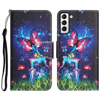 Θήκη τηλεφώνου Samsung Galaxy S21 5G από δέρμα με κρυστάλλινη ζωγραφική (Λουλούδι Πεταλούδα)