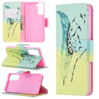 Θήκη δέρματος οριζόντιας αναδίπλωσης με σχέδιο πολύχρωμης ζωγραφικής για Samsung Galaxy S21 5G με βάση & υποδοχές καρτών & πορτοφόλι (Φτερό)