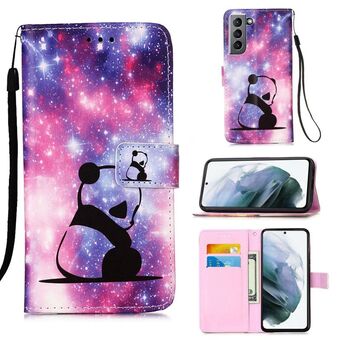Θήκη δέρματος οριζόντιας αναδίπλωσης για Samsung Galaxy S21 5G με σχέδιο πολύχρωμης ζωγραφικής, απλή ύφανση, με βάση & θήκη καρτών & πορτοφόλι & κορδόνι (Μωρό Πάντα)