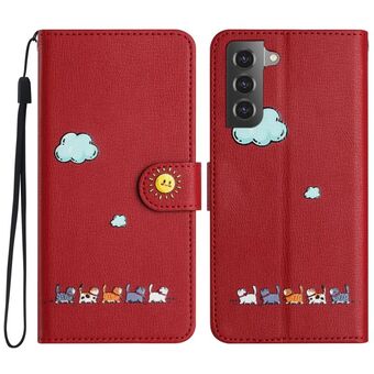 Θήκη τηλεφώνου Samsung Galaxy S21 5G από δέρμα με σχέδια χαριτωμένων γατών (Κόκκινο)