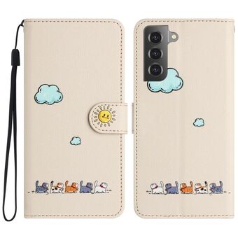 Θήκη δέρματος οριζόντιας αναδίπλωσης για Samsung Galaxy S21 5G με σχέδιο πολύχρωμης ζωγραφικής, απλή ύφανση, με βάση & θήκη για κάρτες & πορτοφόλι & κορδόνι (Φροντίδα Πεταλούδας)