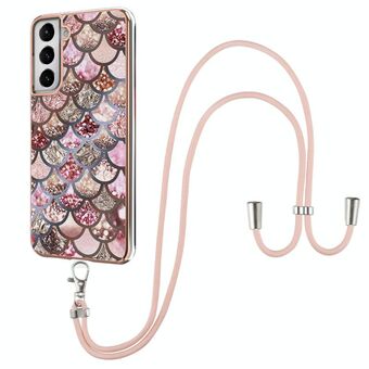 For Samsung Galaxy S21 5G Electroplating Pattern IMD TPU Shockproof Case with Neck Lanyard(Pink Scales)