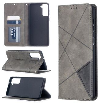 For Samsung Galaxy S21+ 5G Rhombus Texture Horizontal Flip Magnetic Leather Case with Holder & Card Slots(Grey)