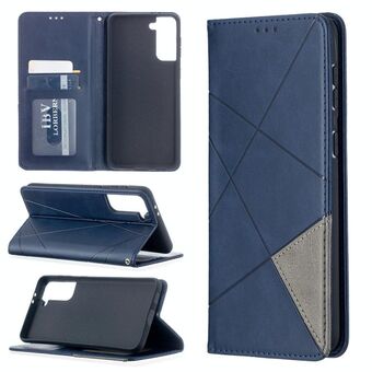 For Samsung Galaxy S21+ 5G Rhombus Texture Horizontal Flip Magnetic Leather Case with Holder & Card Slots(Blue)