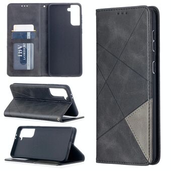For Samsung Galaxy S21+ 5G Rhombus Texture Horizontal Flip Magnetic Leather Case with Holder & Card Slots(Black)