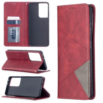 For Samsung Galaxy S21 Ultra 5G Rhombus Texture Horizontal Flip Magnetic Leather Case with Holder & Card Slots(Red)