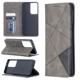 For Samsung Galaxy S21 Ultra 5G Rhombus Texture Horizontal Flip Magnetic Leather Case with Holder & Card Slots(Grey)